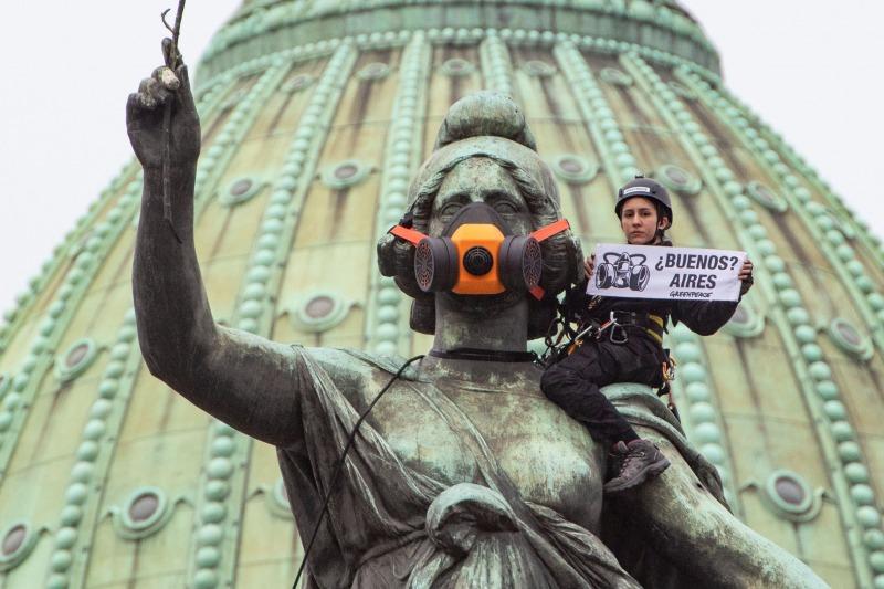 Ciudad de ¿Buenos? Aires, cuestionó la organización ambientalista tras denunciar que la contaminación del aire en el... 17/05/2018 POLíTICA Activistas de Greenpeace escalaron el monumento de los dos Congresos para ponerle una máscara de oxígeno