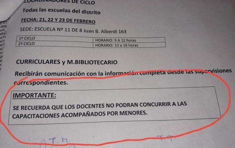 Un grupo de maestras vivió un mal momento cuando “quisieron echarlas” de las capacitaciones obligatorias que organiza la administración de Horacio Rodríguez Larreta por ir con sus hijos. 20/02/2018 POLíTICA Docentes: Ciudad los obliga a capacitarse pero les prohíbe llevar a sus hijos
