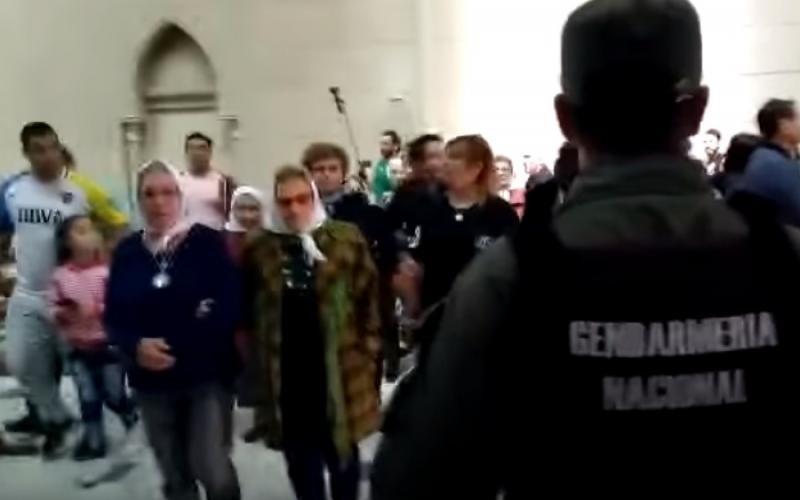 Un grupo de Madres de Plaza de Mayo asistió a la Basílica de Luján, a 40 años del uso del pañuelo blanco. En ese contexto, algunos de sus acompañantes mostraron carteles exigiendo la aparición con vida del joven, y la respuesta fue la burla de Gendarmería. 08/10/2017 POLíTICA Agentes de Gendarmería Nacional se burlaron de Santiago Maldonado: "Síganlo buscándolo"