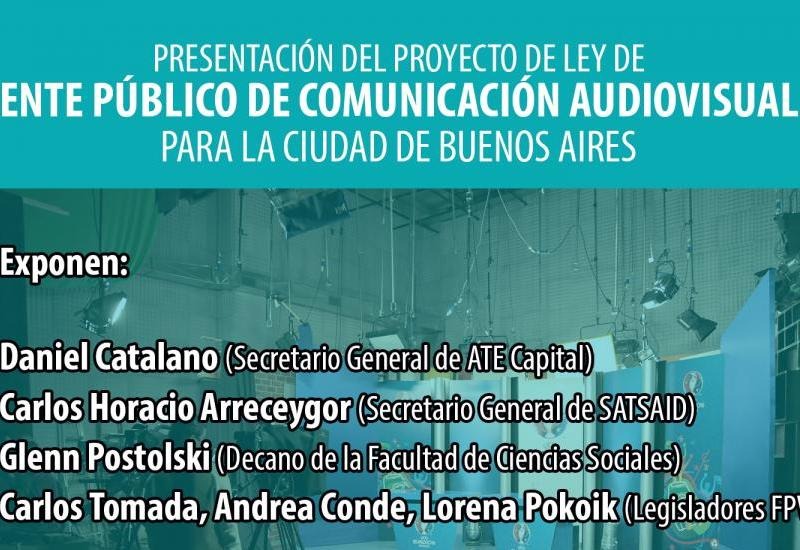 La presentación se realizará el martes 6 de junio a las 18 hs en la Legislatura Porteña. 05/06/2017 POLíTICA El FpV busca crear un Ente Público de Comunicación Audiovisual de la Ciudad
