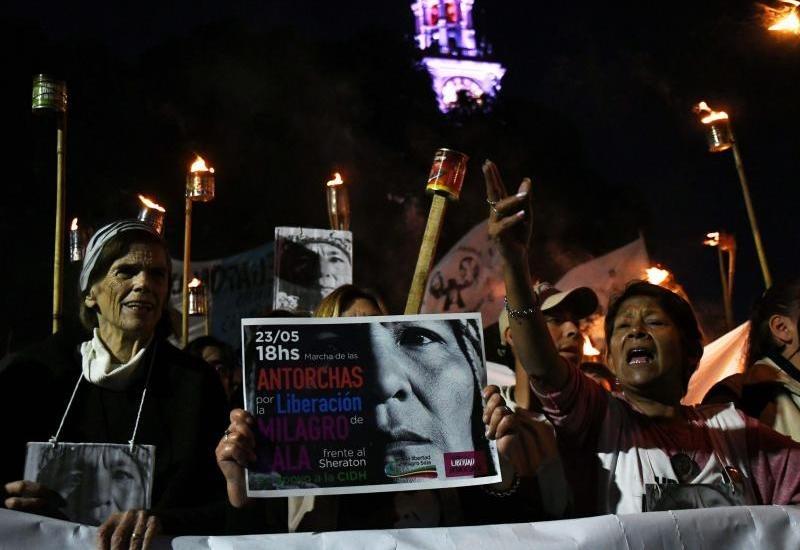La movilización llegó ayer hasta el ingreso del hotel donde sesiona la Comisión Interamericana de Derechos Humanos. 24/05/2017 POLíTICA Se realizó una masiva marcha de antorchas por la liberación de Milagro Sala