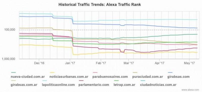 Desde febrero de este año Nueva Ciudad subió más de 52 mil puestos en el ranking de la empresa Alexa, el más prestigioso... 11/05/2017 POLíTICA ¿Qué sitios de noticias eligen los porteños para informarse?