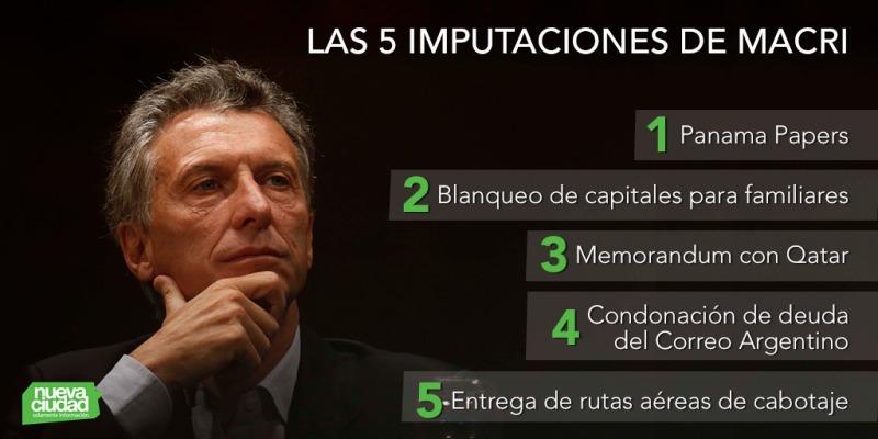 El Presidente debe dar batalla en varios frentes por las denuncias que acumula con 14 meses en el poder. Su familia protagoniza varios... 01/03/2017 POLíTICA Macri ya fue imputado en cinco causas judiciales, ¿Cuáles son?