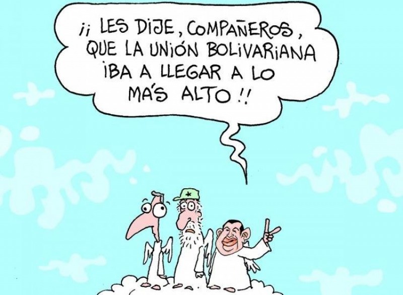 En el dibujo se encuentran en el cielo Néstor Kirchner, Fidel Castro y Hugo Chávez y el ex presidente... 27/11/2016 SOCIEDAD El chiste de mal gusto de Nik sobre la muerte de Fidel Castro