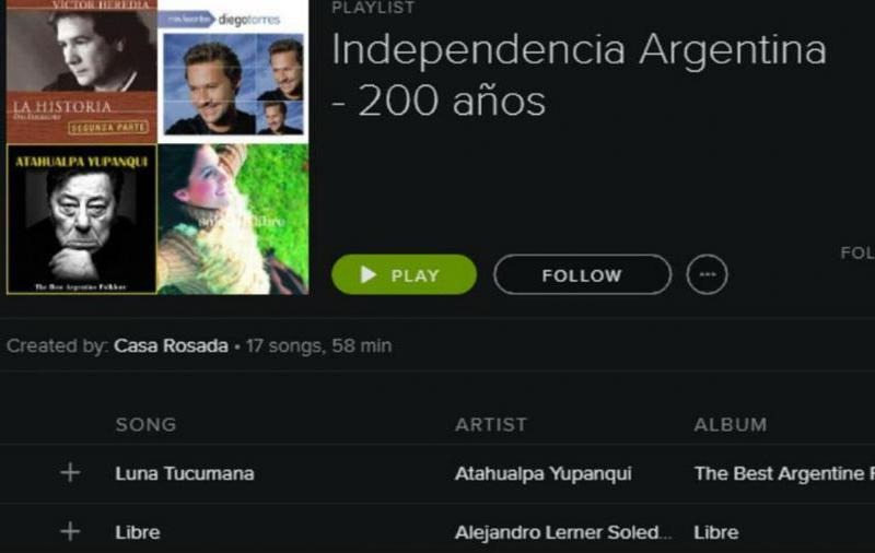 Estalló la polémica en las redes sociales porque el Gobierno nacional armó una lista de canciones alusivas al 9 de julio y no... 09/07/2016 SOCIEDAD El Gobierno armó una lista en Spotify por el Bicentenario y no incluyó el Himno