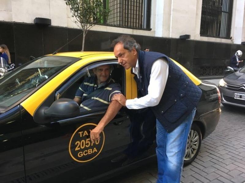 El ex candidato a Presidente mantuvo diálogo con algunos taxistas en la calle que manifestaron su preocupación por la aplicación móvil. 29/03/2016 POLíTICA Scioli apoyó a los taxistas en el conflicto con Uber