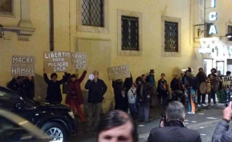 Se concentraron frente al hotel en el que se hospeda Macri junto a su familia y la comitiva oficial. 27/02/2016 POLíTICA En Roma, manifestantes pidieron a Macri la libertad de Milagro Sala