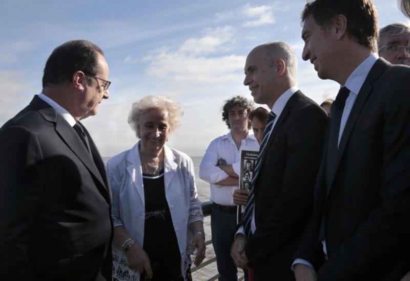 Recorrieron el muro en el que están grabados los nombres de las 10.000 víctimas identificadas de la última dictadura militar. 26/02/2016 POLíTICA Larreta y Hollande en el Parque de la Memoria