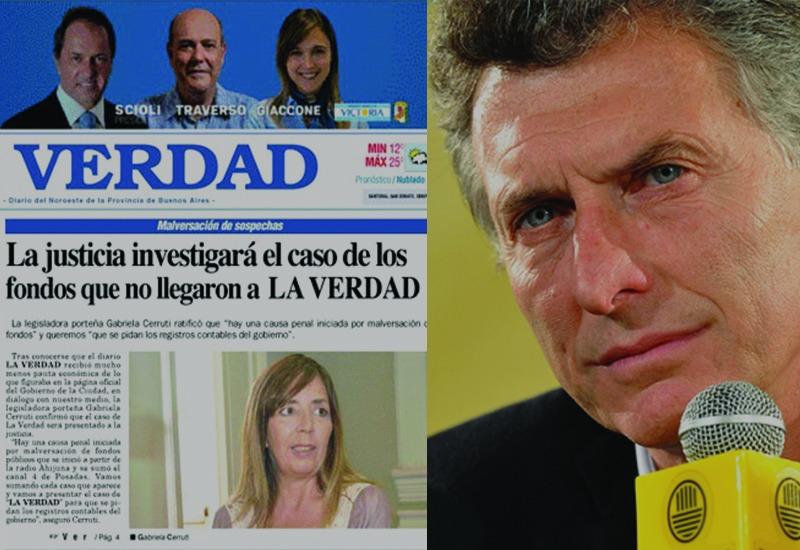 El matutino advirtió que la diferencia entre el monto que facturó por pauta publicitaria y el que figura en los registros oficiales de la gestión del PRO es de casi 170 mil pesos. 22/10/2015 POLíTICA El diario "La Verdad" de Junín denunció a Macri por "presunta estafa"