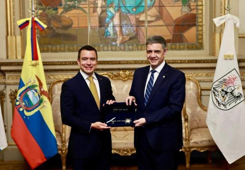 El titular del ejecutivo porteño se reunió con el mandatario ecuatoriano y compartieron experiencias de gestión. El encuentro... 22/08/2025 POLíTICA Jorge Macri le entregó la llave de la Ciudad al Presidente de Ecuardor Daniel Noboa