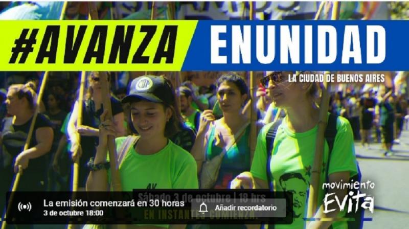 Será este sábado y el evento se transmitirá por Youtube. “Queremos ser parte de una construcción nueva y... 02/10/2020 POLíTICA Avanza y el Frente Popular Venceremos se suma al Movimiento Evita