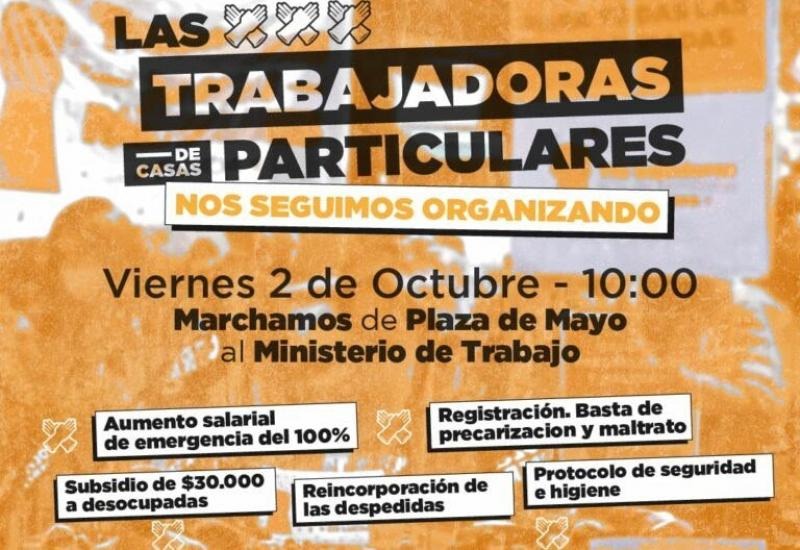 Desde la mañana, las trabajadoras marchan en el centro porteño para exigir “un aumento de emergencia que suba el salario de 8... 02/10/2020 POLíTICA Movilización de trabajadoras de casas particulares al Ministerio de Trabajo