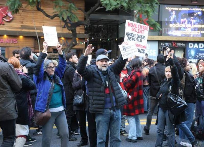 Representantes de la cultura llevaron adelante esta primera acción callejera en su intento por derogar el decreto presidencial, ya que denuncian que busca "desmantelar" la entidad. "El INT es un derecho conquistado que hoy está en riesgo”, alertan. 02/06/2025 POLíTICA Artistas defendieron al Instituto Nacional del Teatro y la Policía respondió con represión