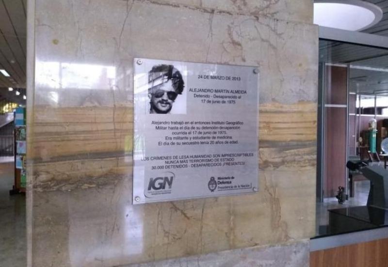 Ocurrió en el Instituto Geográfico Nacional, donde Alejandro Almeida trabajó antes de ser desaparecido en 1975. El hijo de un militar y empleado del organismo confesó haber vanzalizado el homenaje. Recibirá una “sanción ejemplificadora” pero no será expulsado. 12/01/2020 POLíTICA El hijo de un militar robó una placa en homenaje al hijo de Taty Almeida
