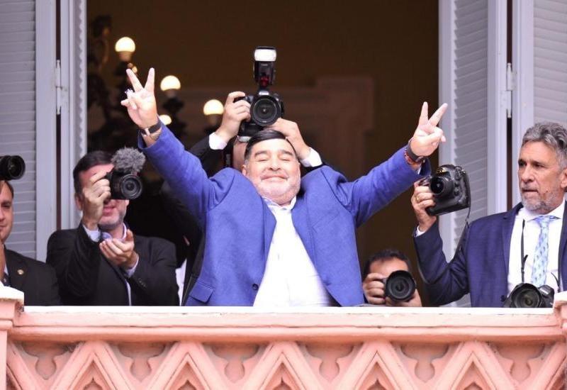Tras su entrevista con el presidente, el DT de Gimnasia saludó a los fanáticos que esperaban en la plaza. 26/12/2019 POLíTICA Maradona se reunió con el Presidente y saludó desde el balcón de Casa Rosada