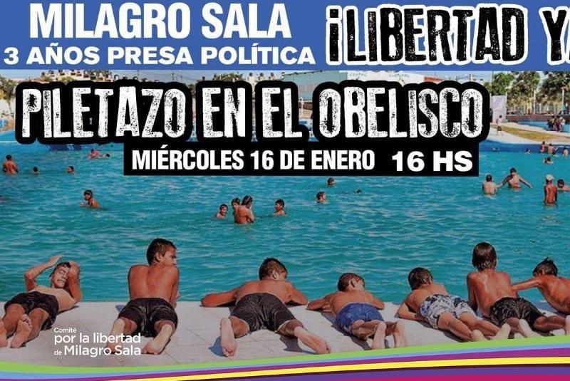 Habrá una radio abierta y a las 16 organismos de DDHH brindarán una conferencia de prensa. 16/01/2019 POLíTICA Realizarán una "piletazo" en el Obelisco a tres años de la detención de Milagro Sala