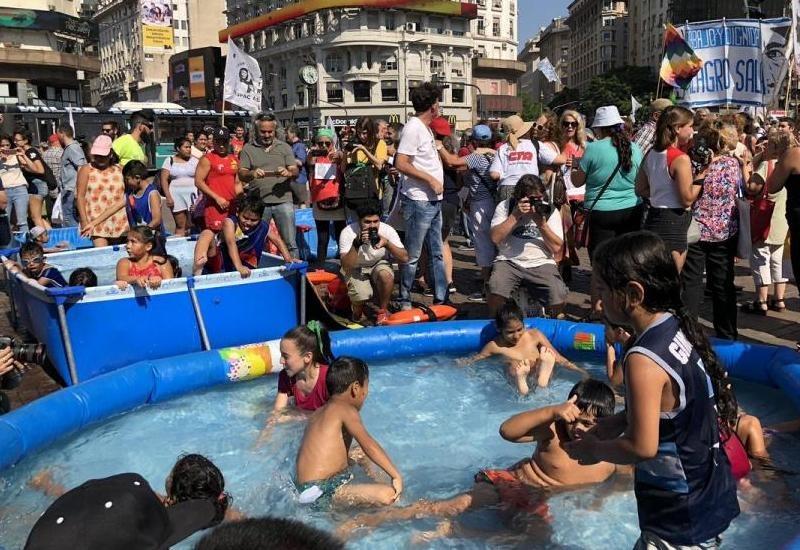 Marcha y zambullida en piletas “pelopincho” para exigir la liberación de Milagro Sala, detenida desde hace tres años y... 16/01/2019 POLíTICA Piletazo en el Obelisco, a tres años de la detención de la líder de la Tupac Amaru