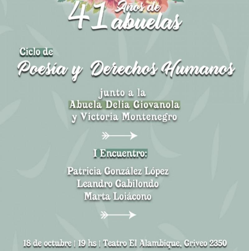 Cumplen 41 años. En el Teatro El Alambique se hará la primera jornada del ciclo “Poesía y Derechos Humanos”. 18/10/2018 POLíTICA Ciclo de poesía y Derechos Humanos en el aniversario de las Abuelas de Plaza de Mayo