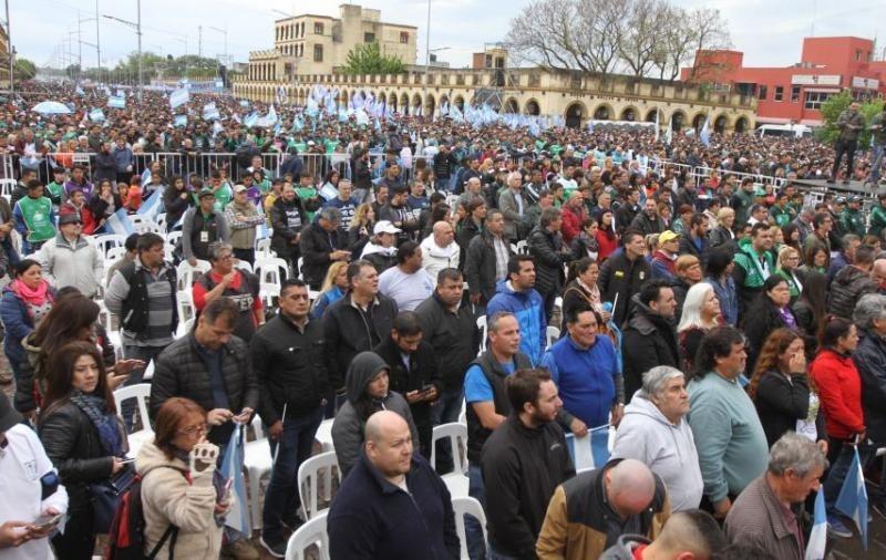 Convocados por el Frente Sindical para el Modelo Nacional y otras organizaciones gremiales, políticas y sociales, miles de personas... 20/10/2018 POLíTICA Una multitud se movilizó a la Basílica de Luján bajo el lema “Pan, Paz y Trabajo”