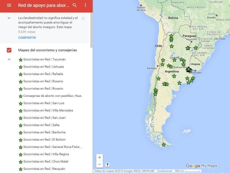 El mapa fue realizado por el colectivo Ni Una Menos con información de múltiples fuentes y compartido ayer a través de las redes sociales. 01/07/2016 #NIUNAMENOS Presentaron un mapa para saber dónde recibir información para un aborto seguro